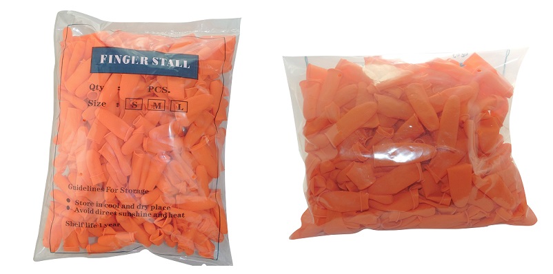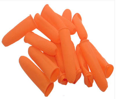 Bao ngón tay cam sần được làm bằng cao su, không sử dụng bột bên trong, sử dụng clo vàng trong suốt trên bề mặt làm giảm sự ăn mòn kim loại, giảm sự ảnh hưởng của tĩnh điện vào các bộ phận điện tử. Kết cấu mũi của bao ngón tay là những hạt sần có độ ma sát cao. Được làm bằng 100% cao su thiên nhiên tinh khiết. Sản xuất không có chất hóa dẻo, dầu silicon và amide.